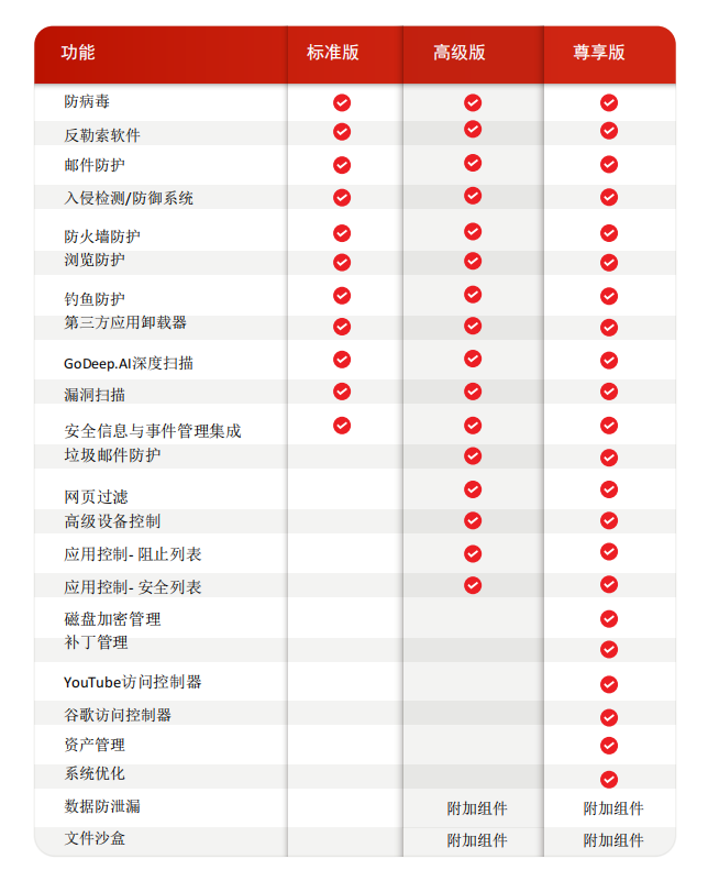 通过多项行业认证,融合先进DNA扫描、行为检测及反勒索软件等创新技术,在不同层面抵御恶意软件与高级威胁。