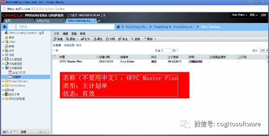说明:在Unifier中创建计划单,准备接收P6同步过来的WBS和作业