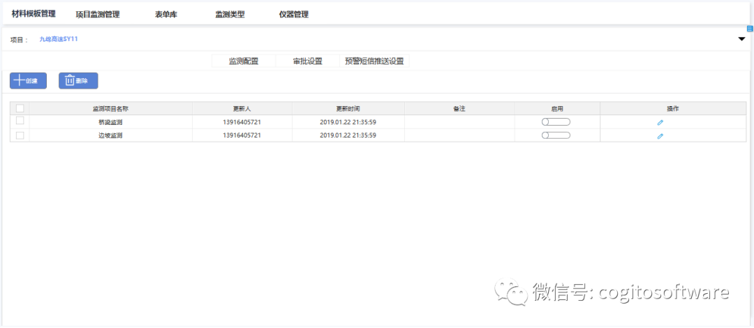 监测后台支持同一项目部下创建不同的监测项目,并自主配置监测项目的监测类型,监测功能,满足用户自由配置监测功能需求和业务需求。