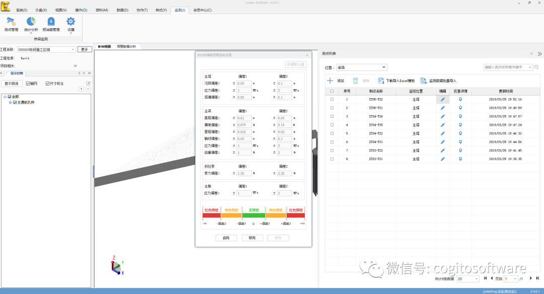 鲁班监测(Luban Monitor)针对基建工程的监控量测,将BIM模型和监控系统相结合,面向项目全过程,以满足项目管理层和企业管理层管理项目的监测需求,实现实时、直观浏览监测信息,实现多样性和及时性的预警监测,实现自动生成图表监测报告。同时配备监测设置后台Luban Center,该平台可以根据不同监测项目,用户自主配置不同的监测类型,充分体现各个监测项目的特性,灵活应用于实际监测。