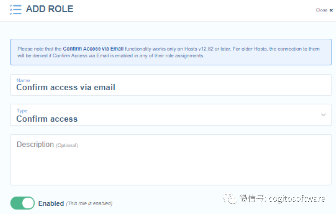 要启用通过电子邮件确认访问*功能,请在“角色”选项卡中创建“确认访问”角色,然后选中“通过电子邮件确认访问”复选框。