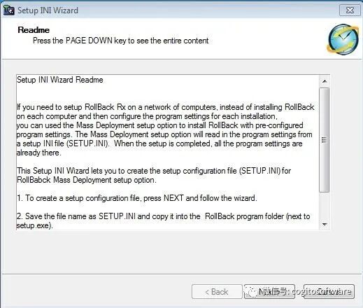 2. 使用 Drive Vaccine 安装包的部署工具文件夹中提供的 SETUP INI 向导实用程序创建Setup INI 文件 (SETUP.INI)。将 SETUP.INI 文件与步骤 1 中创建的 Reboot Restore Rx Pro 程序文件一起放入文件夹。
