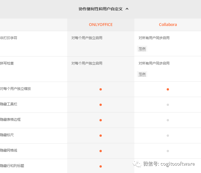 协作是ONLYOFFICE和Collabora的重点功能,让我们来对比一下两者的协作能力: