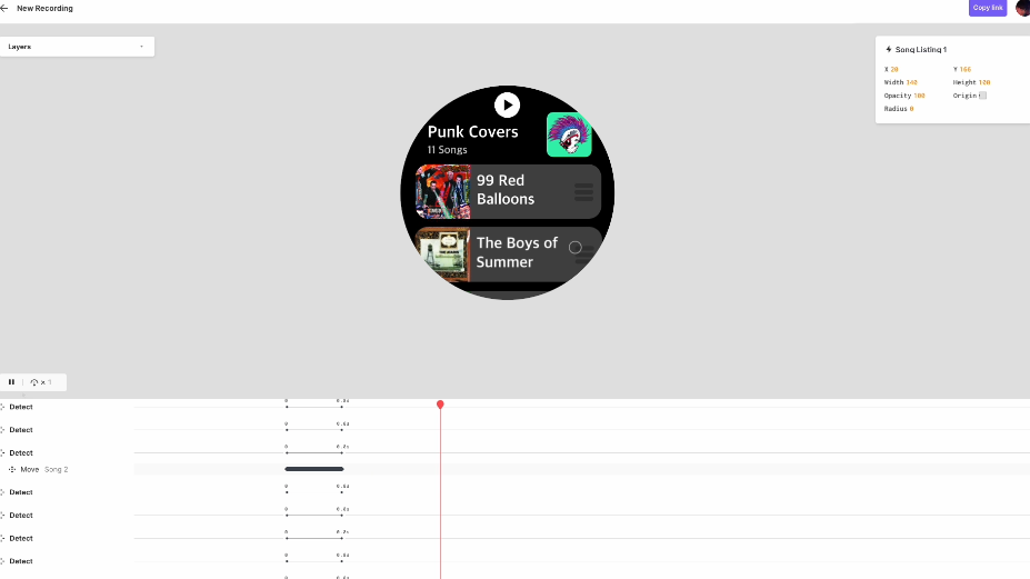 自动为开发人员生成交互记录和动效参数,降低沟通成本,提高准确复现率。