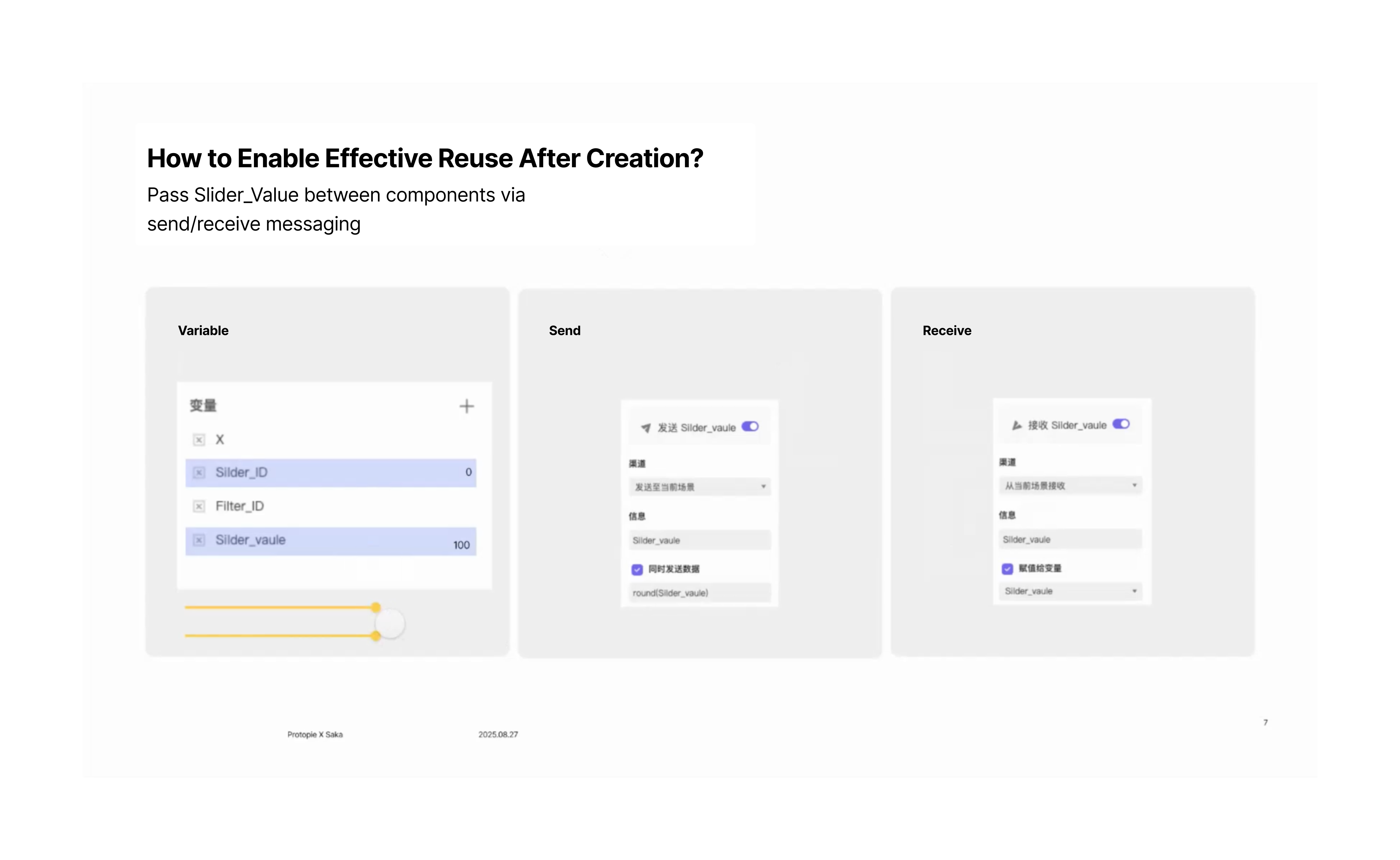 要使这些组件生效,需借助发送与接收功能——通过该功能可将组件输出值用于构建主场景中的交互逻辑。