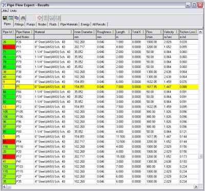 结果网格中的所有数据均可通过单击鼠标即时导出至Microsoft Excel。这使客户能够自定义结果数据和定制报告格式,同时还能利用Excel数学函数对数值范围进行运算,例如计算管道组的总摩擦损失或能量损失。