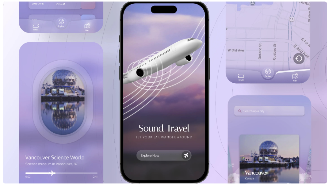 “Sound Travel” 原型充分展示了 Bridge App 的强大能力。概念非常简单却极具创新性:用户可以在地图上任意点击一个位置,系统便会播放该地点的真实环境音,同时呈现照片与地址信息。