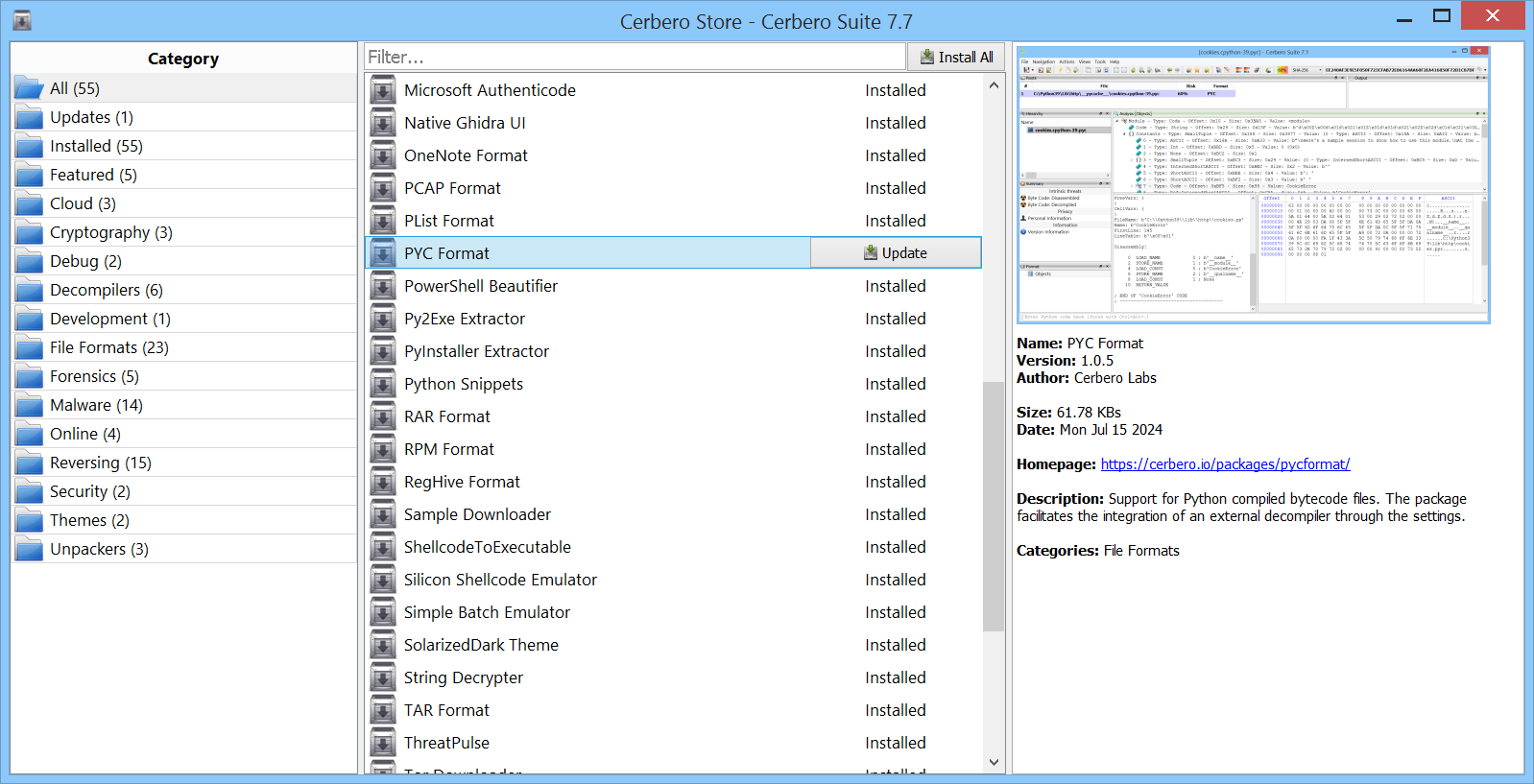 我们致力于快速响应新兴威胁。Cerbero Store作为Cerbero实验室研发的创新解决方案,是该策略的核心组成部分。该平台让客户只需轻点鼠标即可快速下载可选套件,极大简化了在Cerbero套件中查找和安装插件的流程。这不仅提升了用户体验,更使我们能够以卓越效率应对最新威胁。