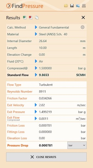 查看 Pipe Flow Wizard Software for Windows的压降计算与结果截图