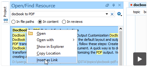 在使用“打开/查找资源”对话框或侧边视图时,现在可右键单击结果并选择“插入为链接”上下文操作,即可在当前文档光标位置快速添加指向该资源的相对链接。