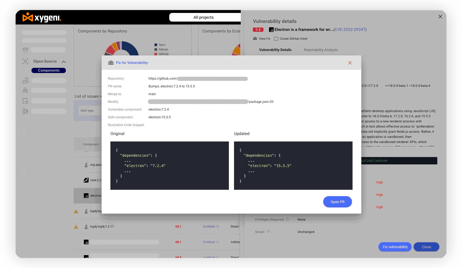 通过智能拉取请求自动升级至无漏洞的开源依赖项。