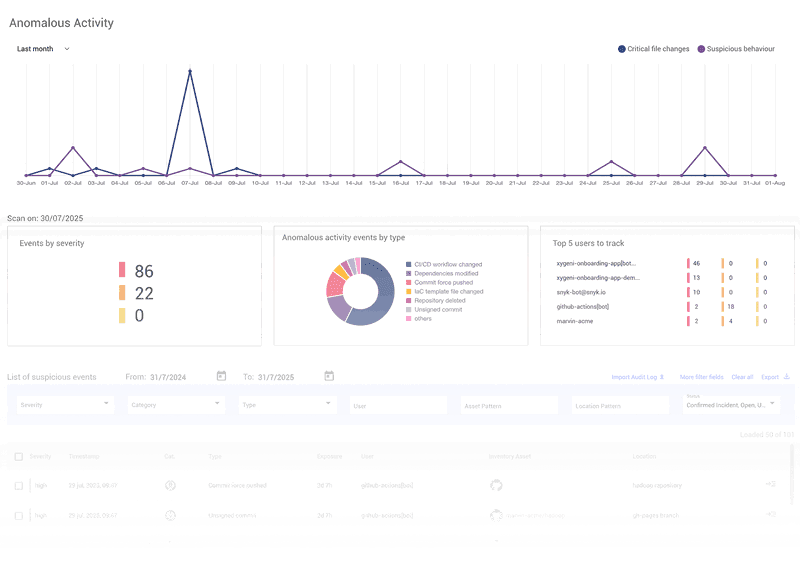 Xygeni 异常检测能力与功能