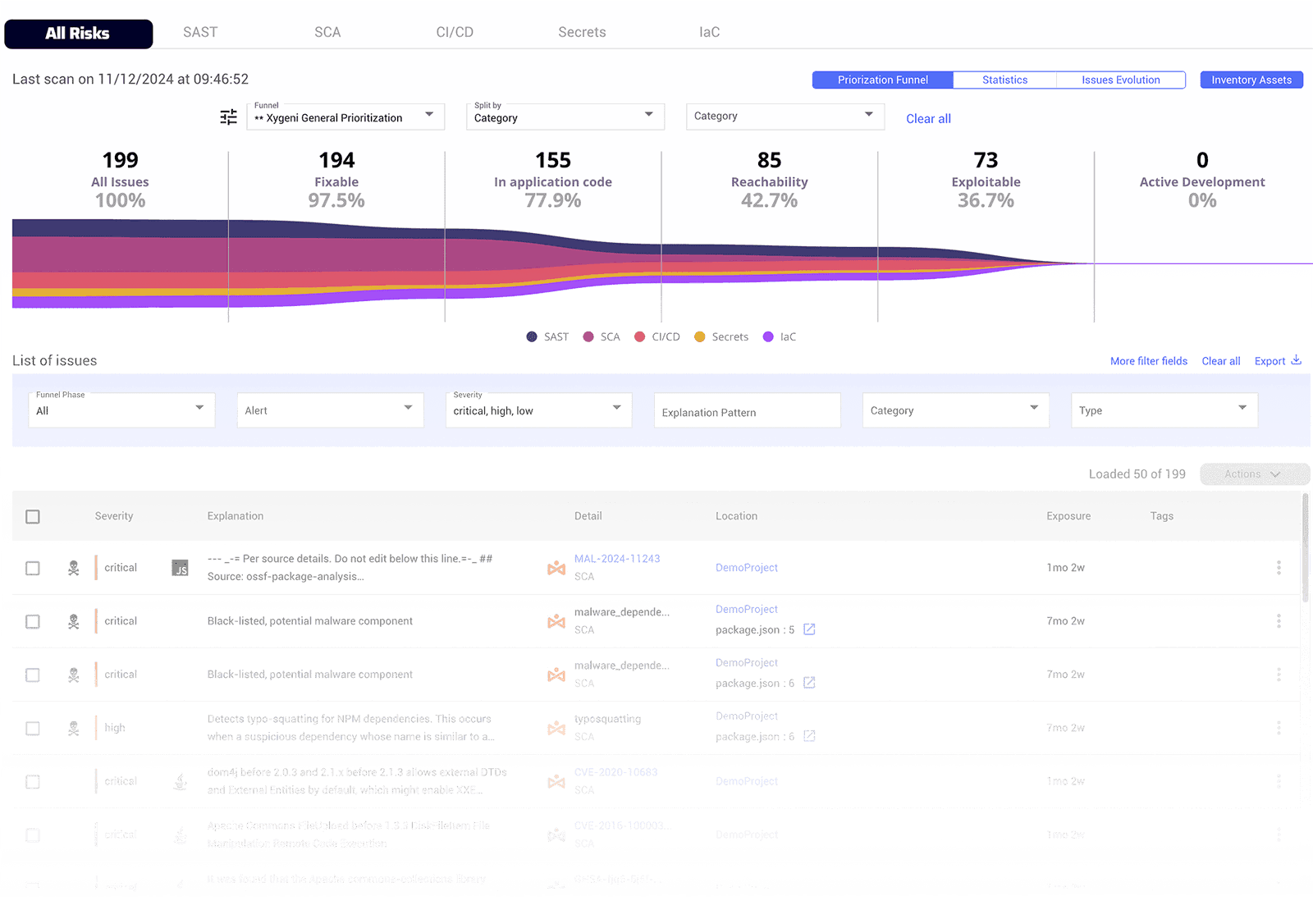 将Xygeni内置安全扫描器与现有应用安全工具无缝衔接,支持从SAST、SCA等常用工具顺畅导入数据。