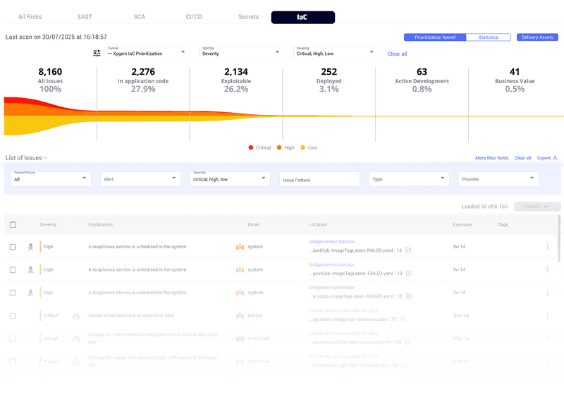 将IaC漏洞与基础设施及应用缺陷关联,结合上下文分析确保开发者聚焦关键风险。