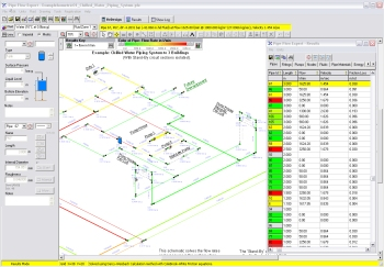 用户可在实际管道系统图纸上直观查看计算结果:管道模型的色彩编码与图形化呈现,使其能即时进行管道设计分析,清晰掌握流量、压力损失及泵的运行点。
