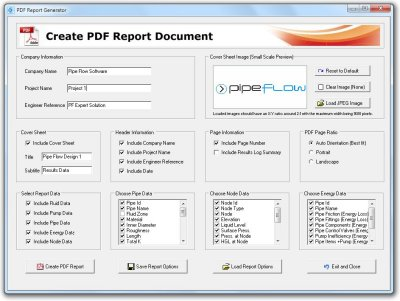 PipeFlow Expert可生成专业定制的PDF报告,完整记录您的管道系统设计方案。用户只需轻点鼠标,即可选择在报告封面添加公司标识、筛选需生成的管道系统数据类型,并选定需在表格中展示的单根管道结果数据。