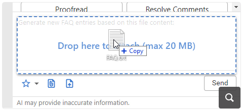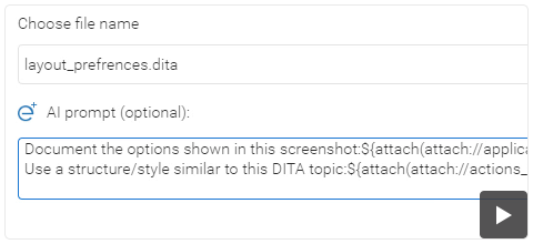 现可通过拖放或复制粘贴方式将文件附加至AI对话。您还可从DITA地图视图拖放主题引用,从而更快速地共享相关文档并为AI交互提供上下文支持。