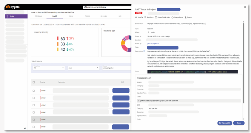 Xygeni SAST通过深度静态分析发现并修复关键漏洞,确保代码满足最高可靠性与合规性标准。