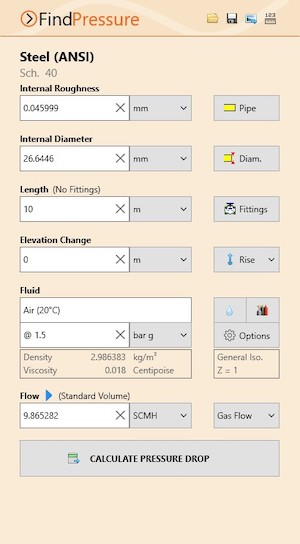 Pipe Flow Wizard软件可计算管道因摩擦损失和管件损失导致的压降。管道压降受多种因素影响,包括管道材质、管道内壁粗糙度、管径尺寸、管道长度、流体流量、流体密度及流体粘度。