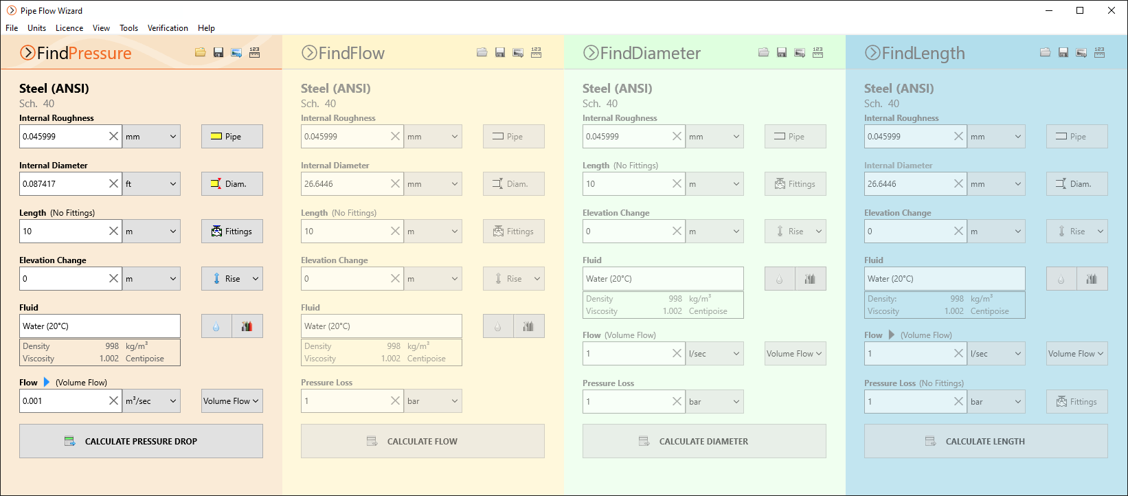 Pipe Flow Wizard for Windows提供简洁而强大的用户界面。通过彩色编码计算面板与屏幕、可调整列宽的标签视图及可展开/隐藏的扩展区域,您可根据工作习惯自由配置界面。