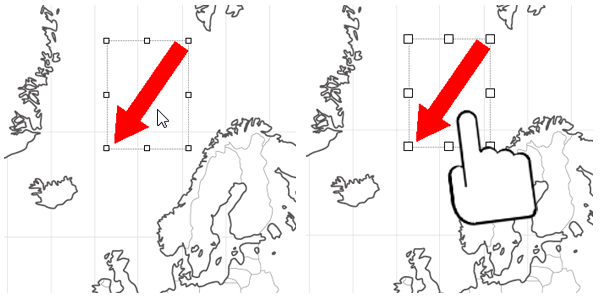 选择对象非常重要。使用鼠标或触摸时,选择区域的大小会自动改变。