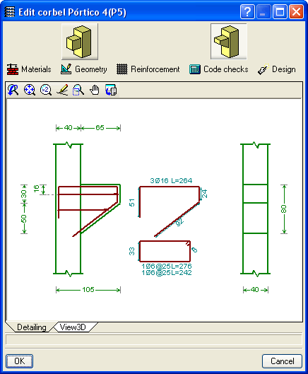 基础垫、桩帽、底板和系杆和系杆的编辑是一个强有力的工具,允许检查由用户定义的任何几何形状和加强件。可以获得对基础进行的所有检查的报告,并查看其符合性系数。