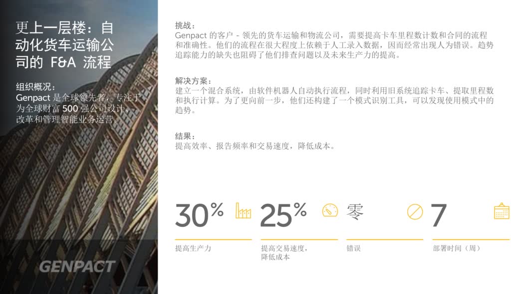 在未来若干年内,最高 25% 的银行业务流程有可能实现自动化。RPA 可以帮助您的组织扩大规模,提升客户体验。利用数字化劳动力,全天候 24 小时解决客户需求。