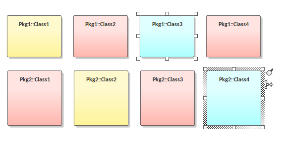 此外,图标已经重新设计为与图表颜色集匹配的颜色,大大提高了建模一致性和UI吸引力。 例如,包,类,用例和其他UML元素已重新着色,以匹配从默认版本15图主题应用的版本15颜色集。 这些图标也出现在图表中的包元素中,其中可见性选项已配置为显示包内容。