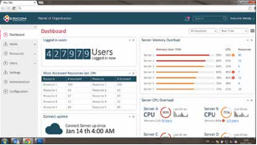 Ericom Connect的几十个内置的报表令您全方位掌握系统资源、用户和活动- 使得它非常容易跟踪和优化应用程序和桌面使用率,监控用户的工作效率,测量系统工作量和健康状况,并解决连接问题或错误