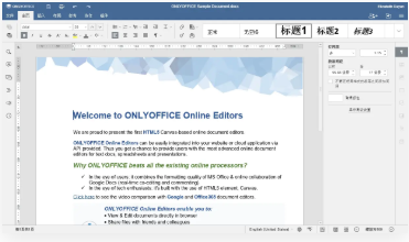 使用集成的ONLYOFFIE在线编辑软件创建和编辑文本文档、电子表格和演示文稿。高度兼容Microsoft格式,支持DOCX、PPTX、XLSX、ODT、ODS、ODP、CSV、TXT等。