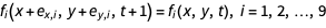 ……其中 fi 为分布函数,ex, i 和 ey, i 为离散速度,且具有下列值: