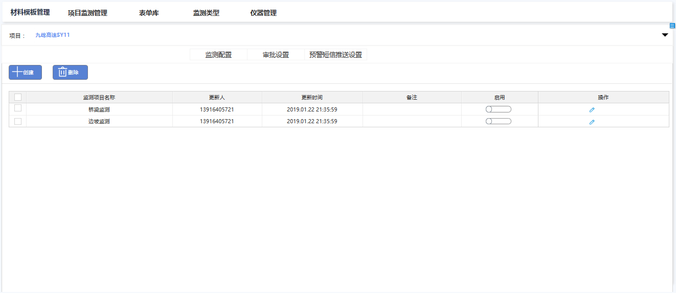 监测后台支持同一项目部下创建不同的监测项目,并自主配置监测项目的监测类型,监测功能,满足用户自由配置监测功能需求和业务需求。