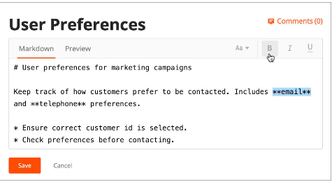 如果您在网上编辑文档(遵循Postman应用程序中收藏夹中的链接,或者在浏览器中登录帐户时遵循仪表板中的链接),则将看到常见格式设置选项的助手,并能够预览更改。