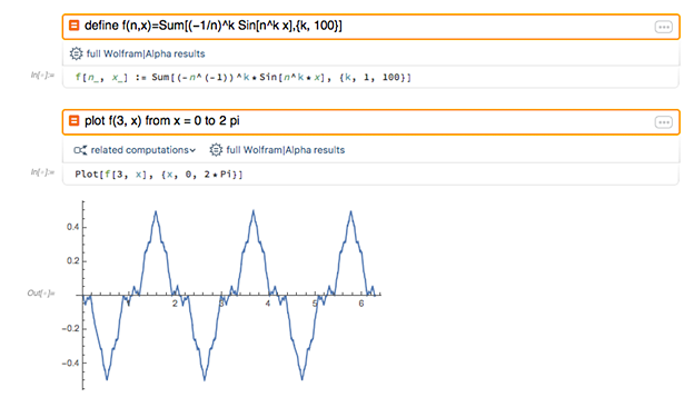使用 Wolfram|Alpha Notebook Edition 对抽象概念进行可视化非常常见。通常,学生们自己可以进行可视化。但教师也可以设置可视化模板,让学生自行填写函数或数据,以便自己探索。