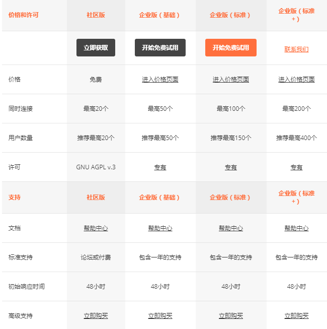 ONLYOFFICE提供不同版本的自托管解决方案:社区版和企业版(基础、标准和标准+)。