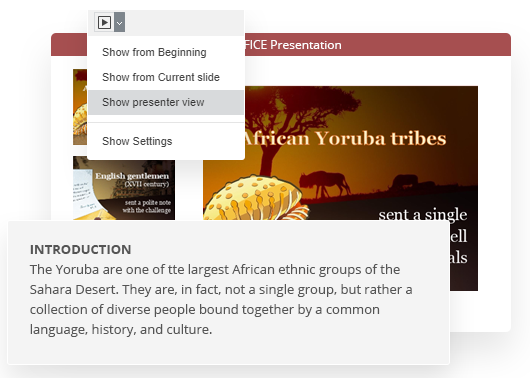 演示者视图模式让您可以写下备注以突出显示在商务演讲时应注意的重要部分,并且轻按鼠标即可切换到任意幻灯片。