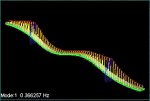 这是一个复合材料风车叶片的动力分析模型。动画显示的是结果中的两个固有振型: 振型2 的频率大约为10赫兹;振型4的频率大约为30赫兹。
