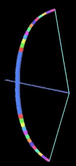 这幅动画展现了从弓被拉开直到箭被射出后一段时间的过程模拟,显示了弓的瞬态反应和箭的运动状态。