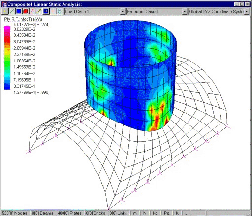下图显示了一个有最大修正蔡-吴储备系数的等值线。作为线框取出的单元不是复合材料,其等值线未显示。