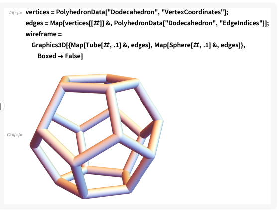 PolyhedronData还将多面体的顶点、边和面的坐标置于您的指尖,这使得创建十二面体的线框版本变得轻而易举:
