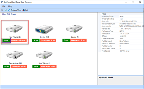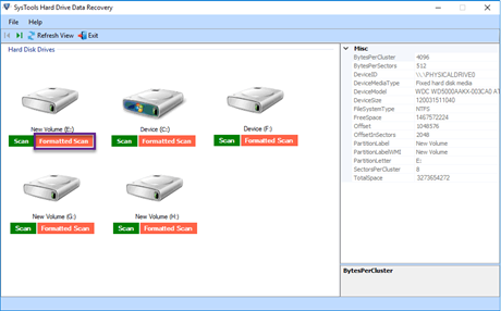 您可以使用SysTools Hard Drive Data Recovery软件从损坏的硬盘恢复数据,而无需格式化。它是一款可靠的软件,能够安全地恢复数据。恢复数据后,您可以格式化硬盘驱动器。这个软件最棒的地方是它可以恢复损坏、删除、格式化和永久删除的数据。