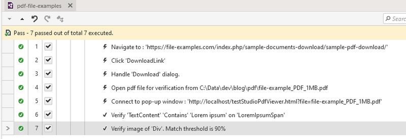 举一个简单的例子,将一个简单的方案 – 导航至网页、下载PDF文件、打开该文件进行验证,然后从文档中选择一个要进行验证的元素。