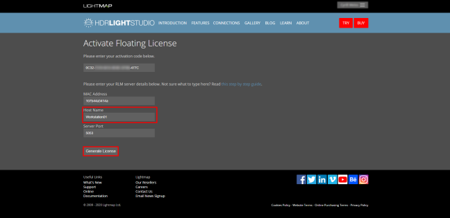 激活码被锁定以使用我们已经为您当前的永久许可证存档的 MAC 地址。 在转移许可证的情况下,这是软件上次转移到的机器的 MAC 地址。 换句话说,激活码被锁定到当前托管您的 HDR Light Studio 许可证的许可证服务器计算机的 MAC 地址。 因此,更新维护不会为您提供重新定位软件的额外机会。