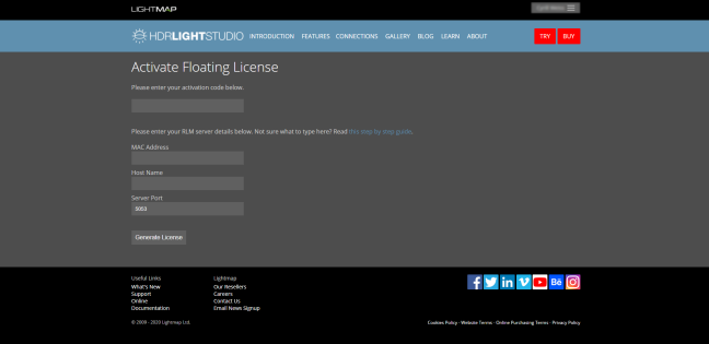 您将被带到“激活浮动许可证”网页——您将在该页面生成新的浮动许可证。
