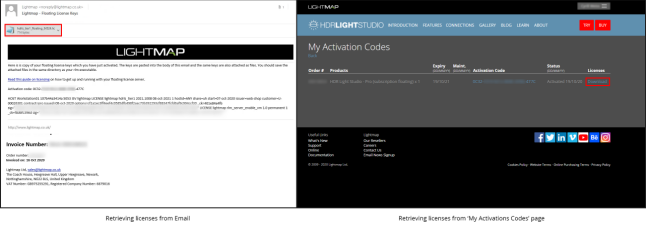 您将收到一封附有许可证文件的电子邮件。 或者访问浮动许可证的另一种方法是转到“我的激活码”页面,然后单击您刚刚使用的激活码旁边的“下载”。