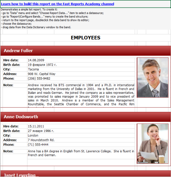 FastReport.Net 报告生成器支持我们审查过的所有三种电子表格格式。 让我们来看看在本机和第三方电子表格处理器上查看 XLSX 和 ODS 格式的报告时会是什么样子。 这是原始的导出前报告: