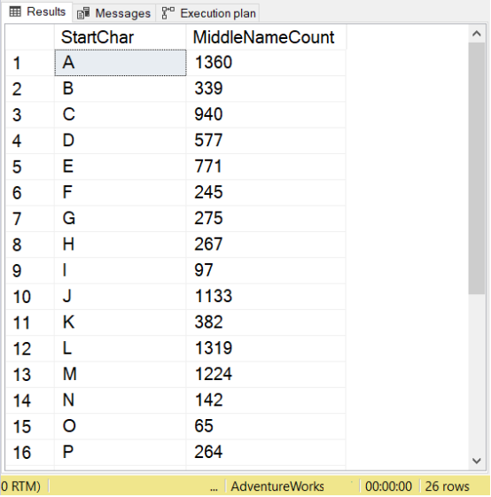 这会计算所有以 A、B、C 等开头的中间名。您可以在下面的图 1 中看到结果。