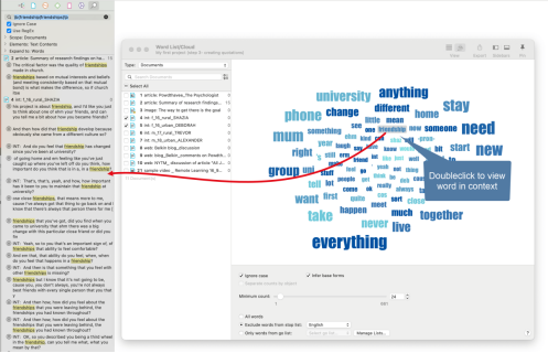 图 7:从词云或词表访问上下文中的词(ATLAS.ti 9.1 Mac 版)