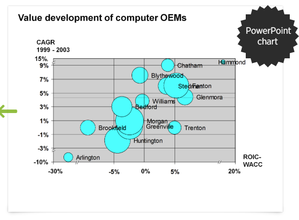 下方第二张幻灯片显示了他们使用 think-cell 创建的内容,将其丰富的图形经验呈现在用户的 PC 桌面上。借助 think-cell,您也可以在无需任何调整的情况下生成如此精美的效果。