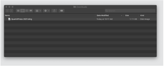 2、转到您的下载文件夹并双击QuarkXPress 2021.dmg 文件打开下载的安装程序包。